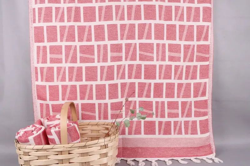 Fiber composition ensures optimal absorbency and durability, crafted from Organic Turkish Cotton, resulting in high-quality beach towels. Characterized by hand-weaving on looms, the dimensions of the towels are 34x69 inches or 85x175 centimeters, with a tolerance of ± 2 inches or 5 centimeters. Each towel weighs 360 grams, guaranteeing a balance between lightweight and substantial absorbency.