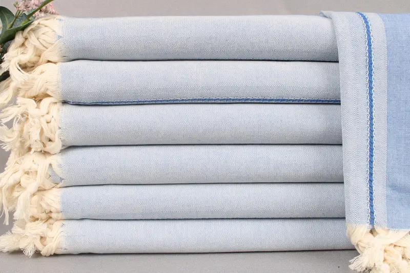 Woven from organic Turkish cotton, these towels exhibit high absorbency and durability, ensuring long-lasting use and easy maintenance. Resulting in a standard size of 40x67 inches or 100x170 centimeters, each towel weighs approximately 290 grams, with a tolerance of ± 2 inches or 5 centimeters due to hand-weaving techniques.