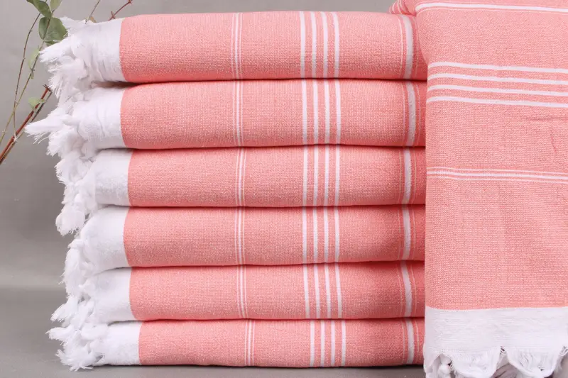 Absorbency is ensured by organic Turkish cotton, characterized by being woven on traditional looms. Each product, ranging from towels to throws, has dimensions of 36x71 inches or 90x180 centimeters, with a weight of 400 grams. Tolerances in weaving may result in size variations of up to ±2 inches or 5 centimeters.