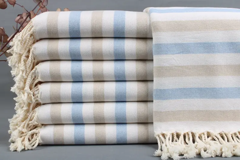 Turkish towels are woven from organic Turkish cotton on traditional looms, ensuring superior absorbency and durability. Measuring 40x70 inches or 100x180 centimeters, these towels range in weight from 425 to 475 grams. Due to the hand-weaving process, the dimensions may vary by up to 2 inches (5 centimeters).