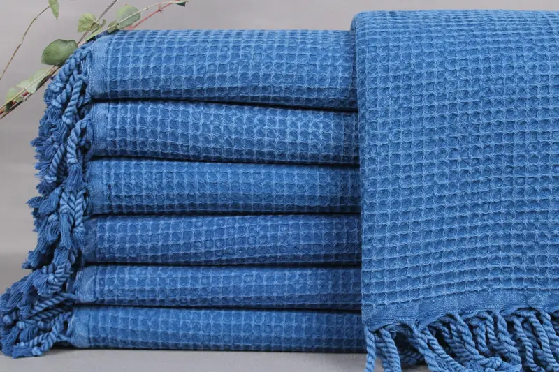 Each product is woven from organic Turkish cotton on looms, ensuring superior fiber composition and absorbency, resulting in highly durable and soft towels. Characterized by precise dimensions of 36x67 inches or 90x170 centimeters and a weight of 300 grams, the towels exhibit a tolerance of ± 2 inches or 5 centimeters due to the hand-weaving process. Towels are personalized through embroidery or name insertion, allowing customization of letters, names, or logos.