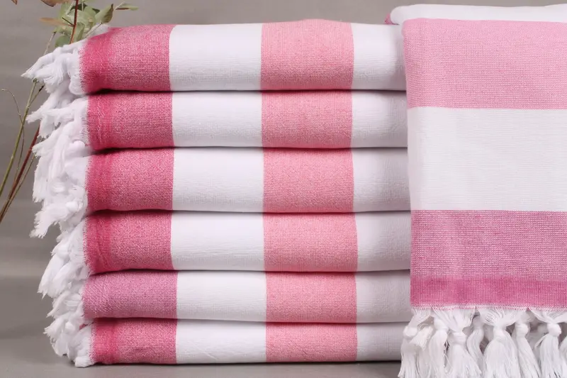 Characterized by superior absorbency, these towels are woven from organic Turkish cotton, ensuring a soft and durable product. Resulting in a dimension of 36x63 inches or 90x160 centimeters, the weight of each towel is 425 grams. Weaving tolerances are ± 2 inches or 5 centimeters.