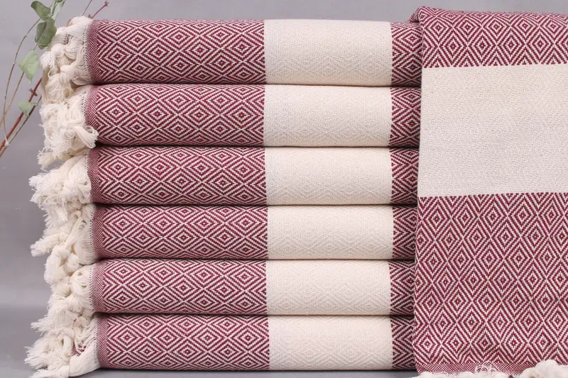 Turkish towels, categorized under wedding gifts, are characterized by their organic Turkish cotton composition, ensuring maximum absorbency and durability. Resulting in a 40x71 inches (100x180 cm) towel weighing 420 grams, the hand-weaving process allows for a tolerance of ±2" or 5 cm. Personalized embroidery options include letters, names, or logos in various fonts and colors, with placement recommendations provided.