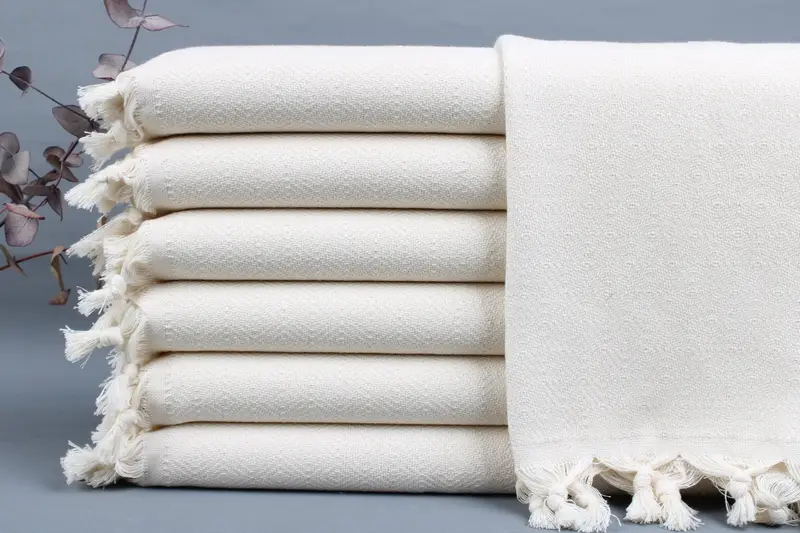 Fiber composition ensures exceptional absorbency and softness of the Turkish towels. Characterized by dimensions of 20x36 inches (50x90 cm) and a weight of 115 grams, these towels result in a lightweight yet durable product. The hand-weaving tolerance of ±2 inches (5 cm) guarantees consistency in craftsmanship.
