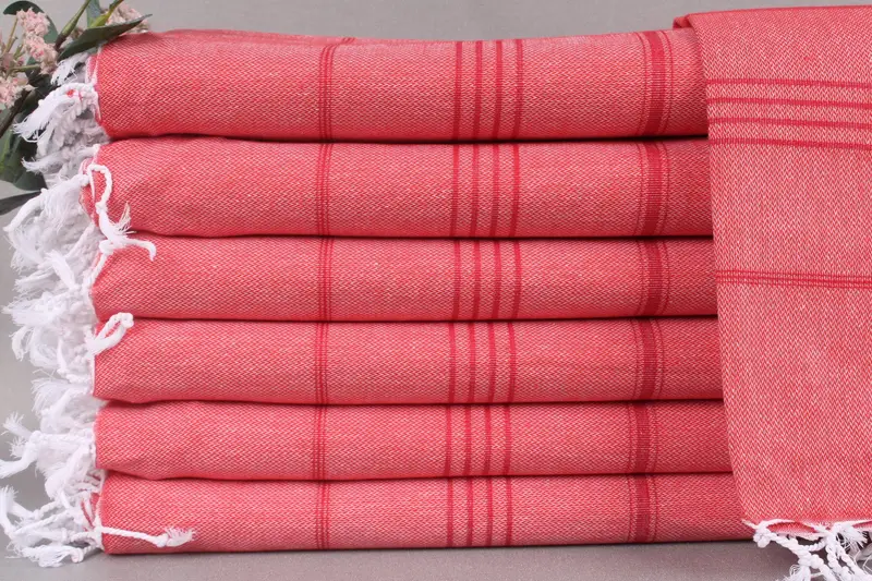Our towels are woven from organic Turkish cotton, ensuring a soft and high-quality fabric. Resulting in an effective absorbency, these beach towels are perfect for multiple uses. Each towel is 71x40 inches or 180x100 centimeters with a weight of 265 grams, characterized by a hand-weaving tolerance of ±2 inches or 5 centimeters.