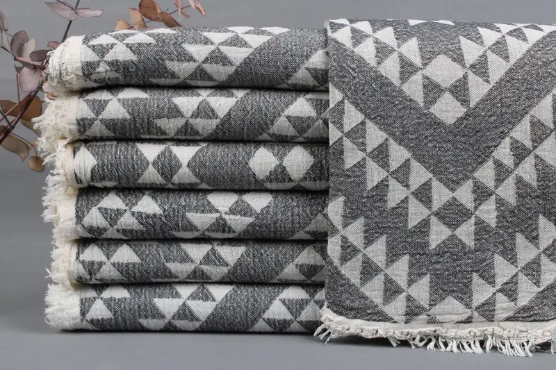 All towels are woven from organic Turkish cotton, ensuring high quality and durability. Resulting in a fiber composition characterized by natural absorbency, the towels maintain softness after each wash. Measuring 40x70 inches or 100x180 centimeters with a tolerance of ± 2 inches or 5 centimeters, these items range between 425-475 grams.