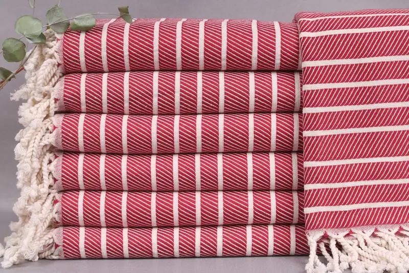 The towels, hand towels, and blankets consist of organic Turkish cotton, ensuring optimal absorbency and durability. Characterized by dimensions of 40x71 inches or 100x180 centimeters, each piece weighs approximately 360 grams, with a weaving tolerance of ± 2" or 5 centimeters. Resulting in a handmade product, every item is customizable with letters, names, or logos, enhancing personalization.