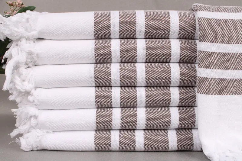 Characterized by its composition of organic Turkish cotton, the towel ensures high absorbency and durability. Resulting in towels that are hand-woven on looms, they measure 40x71 inches or 100x180 centimeters, with a tolerance of ±2 inches or 5 centimeters. Each weighing 380 grams, these towels are characterized by meticulous craftsmanship.