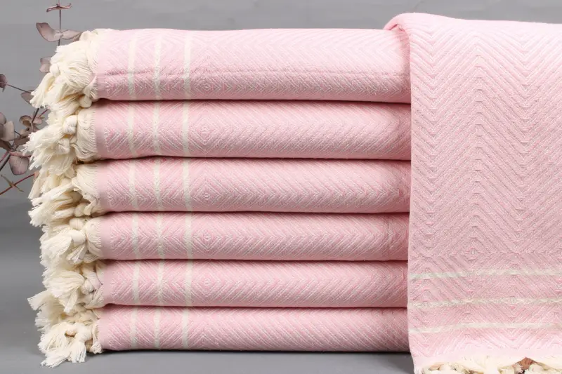 Turkish cotton blankets and towels are woven from organic fibers, ensuring high absorbency and durability. Characterized by dimensions of 71x95 inches (180x240 cm) and a weight of 1000 grams, these items exhibit a hand-weaving tolerance of ±2" or 5 cm. Resulting in slight variances, each piece is crafted with precision.
