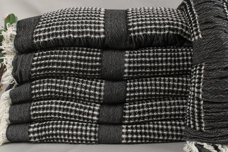 Woven from organic Turkish cotton, the blankets and throws are characterized by their fiber composition, ensuring superior absorbency. Measuring 79x83 inches or 200x210 centimeters with a tolerance of ±2 inches or 5 centimeters, these items weigh 1100 grams. Each piece is meticulously hand-woven on looms, with pre-shrunk status. Personalization options include embroidery or name placement, with detailed instructions provided for customization. Orders over 35 USD qualify for free worldwide shipping, facilitated by FedEx or DHL Express with deliv...