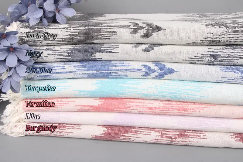Weaving techniques include batik, block print, and appliqué, providing a detailed Paisley pattern. The products are designed for multiple uses, from beach towels to bedspreads. Customers can customize their towels with embroidery, names, or logos, specif...
