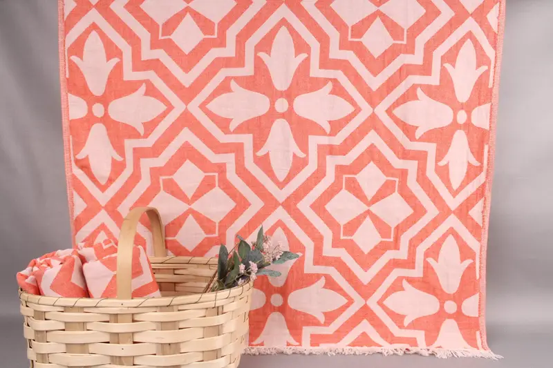 Turkish towels are composed of organic Turkish cotton, ensuring high absorbency and softness. Characterized by dimensions of 36x67 inches (90x170 centimeters) and weighing 310 grams, each piece is handwoven with a tolerance of ± 2 inches or 5 centimeters.