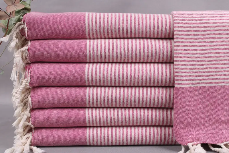 Woven entirely from organic Turkish cotton, these towels ensure high absorbency and durability. Characterized by a 40x71 inches (100x180 cm) size, the towels weigh 300 grams with a tolerance of ±2 inches or 5 cm. Assuring precision in hand-weaving, each towel exhibits a ±2.5 cm tolerance due to the artisanal process.