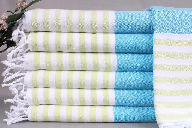 Turkish bath towels, including blankets and throws, are woven from organic Turkish cotton, ensuring superior absorbency and softness. Each product, meticulously handmade on looms, measures 40x71 inches or 100x180 centimeters, with a tolerance of ± 2 inches or 5 centimeters. These towels weigh approximately 280 grams, providing substantial comfort.