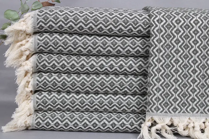 Turkish cotton, characterized by its superior absorbency and durability, forms the basis of these premium towels. Ensuring a soft texture after initial washes, each towel is meticulously woven on traditional looms. Resulting in a slight dimensional variance of ±2 inches (5 cm) due to hand-weaving techniques.