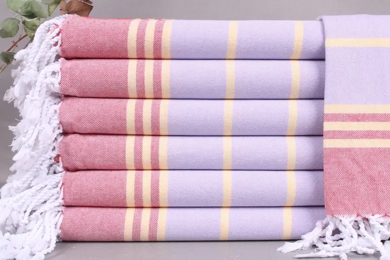 Organic Turkish cotton ensures high absorbency and durability. Characterized by 36x71 inches dimensions or 90x180 centimeters, these towels weigh 300 grams. Hand-woven tolerances amount to ± 2 inches or 5 centimeters.