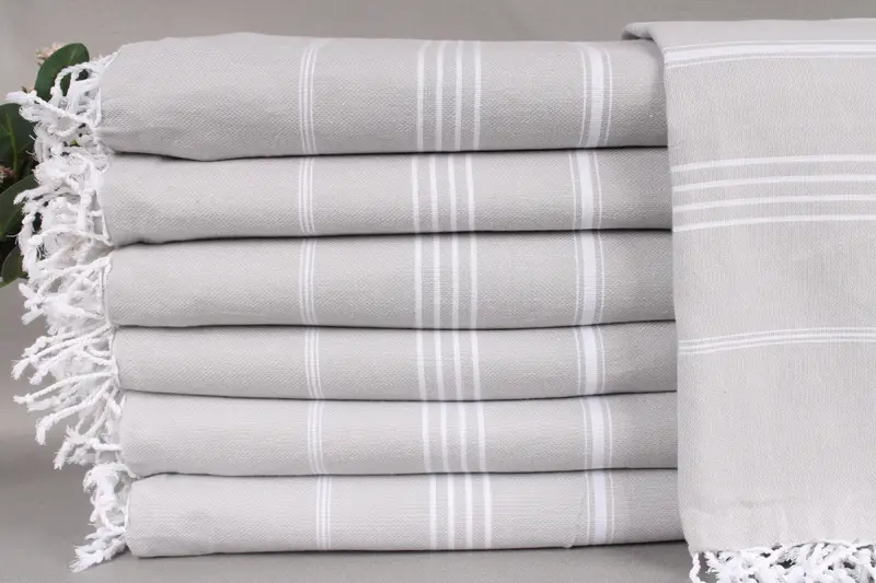 Turkish textiles are recognized for their exceptional fiber composition, characterized by the use of organic Turkish cotton. This material ensures high absorbency and durability, making it ideal for beach and bath use. The towels and throws are handwoven on looms, resulting in precise dimensions of 79x95 inches (200x240 cm) with a tolerance of ± 2 inches (5 cm). Each product weighs 550 grams.
