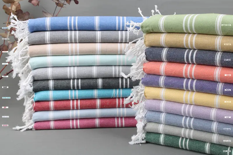 Woven from Turkish cotton, these towels exhibit superior absorbency ensuring efficient water retention. Characterized by dimensions of 40x70 inches or 100x180 centimeters, the weight of these towels ranges from 425 to 475 grams. Tolerances in weaving result in variations of ±2 inches or 5 centimeters.