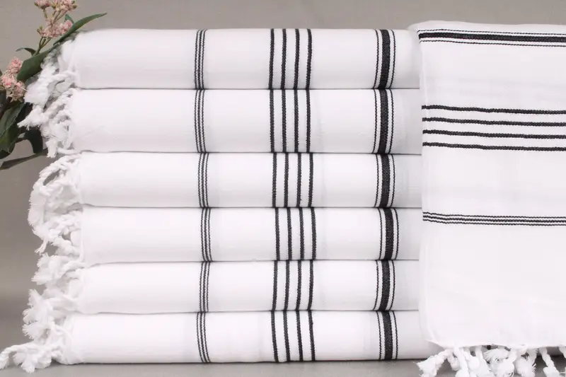 Each beach towel, blanket, and hand towel is woven from organic Turkish cotton, ensuring high absorbency and durability. Characterized by dimensions of 40x71 inches or 100x180 centimeters, these items weigh approximately 300 grams, resulting in a slight tolerance of ±2 inches or 5 centimeters due to the hand-weaving process. Embroidery customization options are available with specific personalization details required.