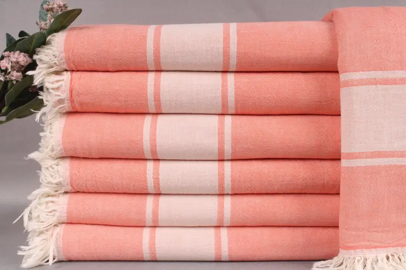 The product comprises Turkish towels and blankets woven from organic Turkish cotton, ensuring exceptional quality and absorbency. Characterized by dimensions of 60x71 inches or 150x180 centimeters and a weight of 520 grams, these items are handmade with a tolerance of ± 2 inches or 5 centimeters.