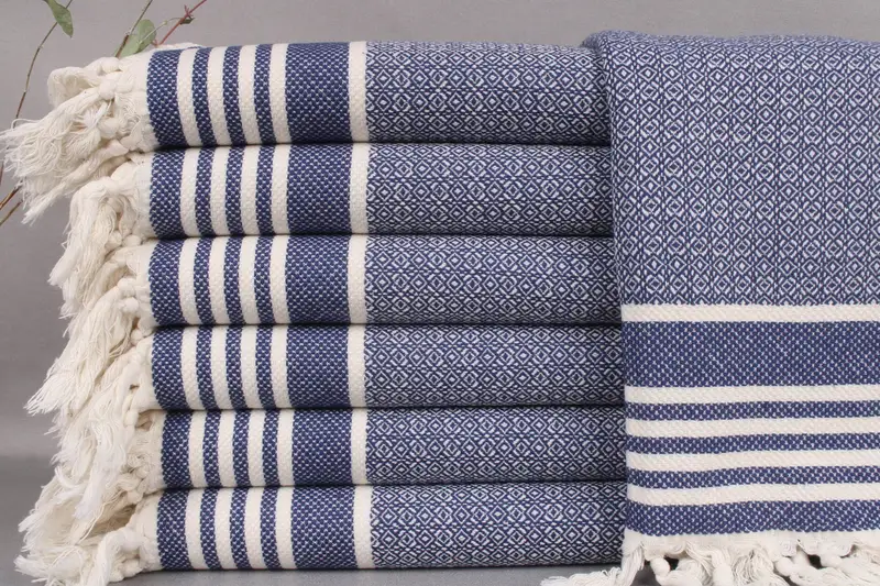 The towels and throws are handcrafted, allowing for personalization with embroidery or monogramming. Each product is pre-shrunk, with dimensions maintaining ± 2" or 5cm post-wash.