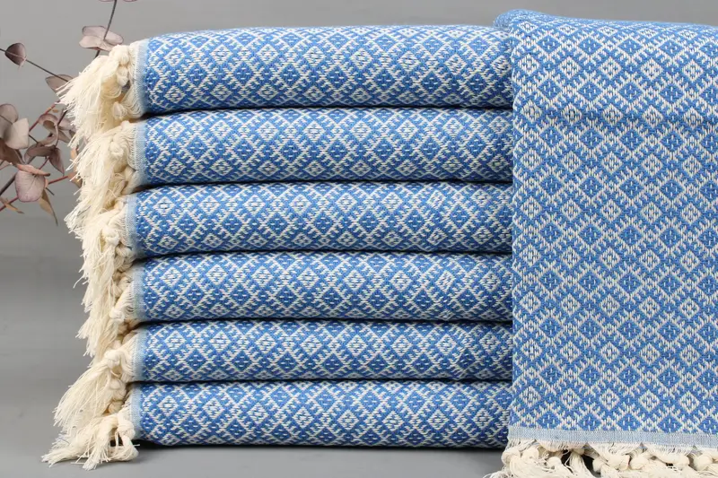 Each listing comprises a single towel, blanket, or hand towel, all handmade from organic Turkish cotton using traditional loom weaving ...