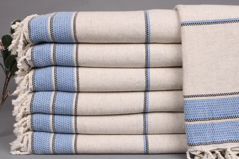 Organic Turkish cotton, renowned for its exceptional quality, forms the basis of these bedspreads and blankets, ensuring superior absorbency and breathability. Characterized by a dimension of 95x103 inches or 240x260 centimeters, these items possess a weight of 1200 grams, resulting in a luxurious feel. The tolerances in hand-weaving may result in a size variance of ± 2 inches or 5 centimeters.