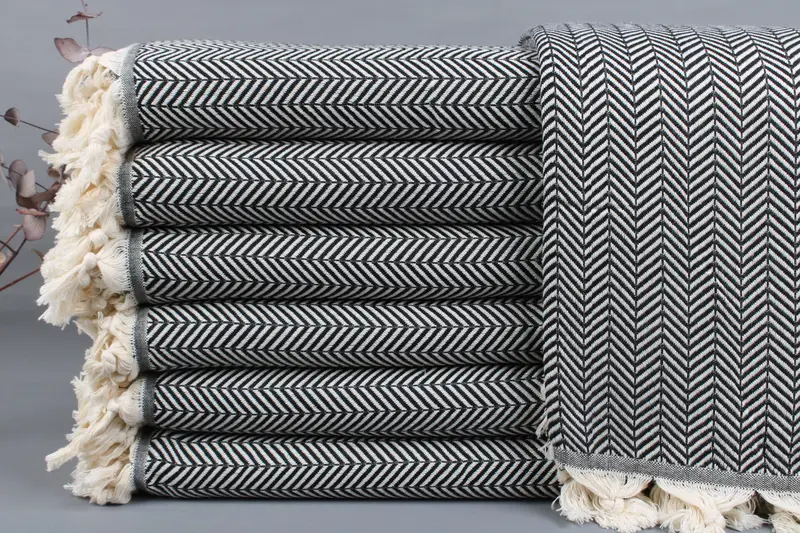 The product assortment, primarily consisting of blankets and throws, is characterized by its utilization of Organic Turkish Cotton, ensuring durability and softness. These items, featuring a secondary color of beige, are hand-woven on traditional looms, resulting in slight dimensional variances of ±2 inches or 5cm. The weight of each piece is standardized at 1130 grams.