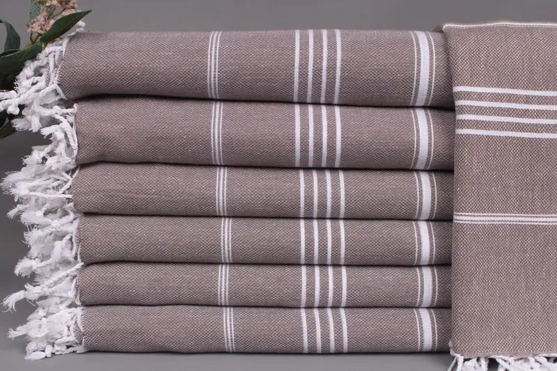 The handwoven blanket is crafted from 100% organic Turkish cotton, ensuring superior absorbency and softness. Dimensions are precisely 63x87 inches or 160x220 centimeters, with a weight of 520 grams. Hand-weaving tolerances may result in size variations of up to ± 2 inches or 5 centimeters.