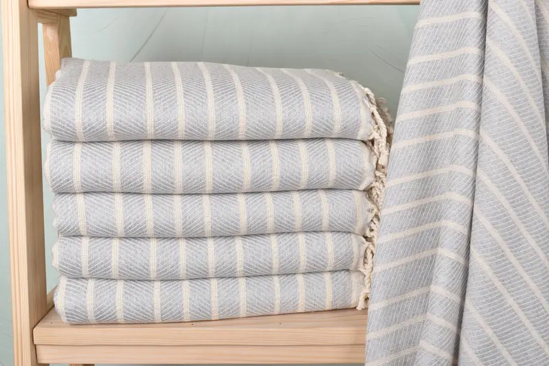 Our beach towels are crafted from a blend of organic cotton and linen, ensuring durability and superior absorbency. Resulting in lightweight yet robust towels, each piece is handmade, which may result in slight variations within a tolerance of 1-2.5 cm in dimensions. Each towel measures precisely 40x71 inches and weighs 425 grams.
