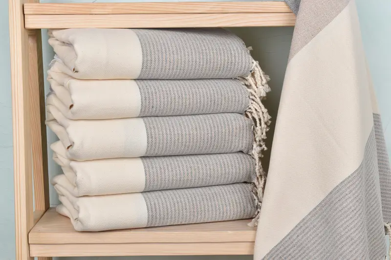 Organic cotton/linen composition ensures high absorbency, resulting in optimal water retention. Measuring 40x71 inches and weighing 350 grams, these towels feature hand-weaving tolerances within 1-2.5 cm. Embroidery customization is available for personalized orders, with pre-shrunk status recommended prior to first use.