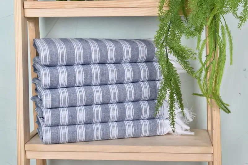 Characterized by a luxurious blend of organic cotton and linen, this beach towel ensures superior absorbency and durability. Dimensioned at 40x71 inches with a weight of 210 grams, these towels are meticulously hand-woven, resulting in slight variances of up to 1-2.5cm.