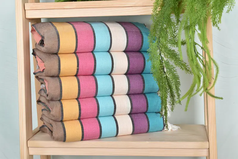 The sub-category of beach towels, featuring a secondary color of beige, is subject to pre-shrink washing to maintain its integrity. Size and weight may vary slightly, reflecting the handmade process. The towels ...