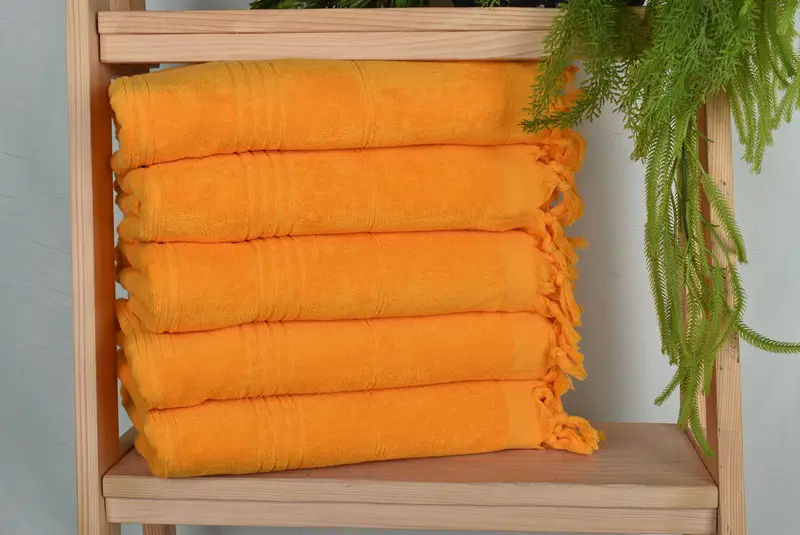 The towels are characterized by their organic cotton fiber composition, ensuring high durability and hypoallergenic properties. Resulting in an exceptionally soft and absorbent product, their precise dimensions stand at 70x36 inches, with a weight of 420 grams. Due to their handmade nature, dimensions might slightly vary by up to 2.5 cm.