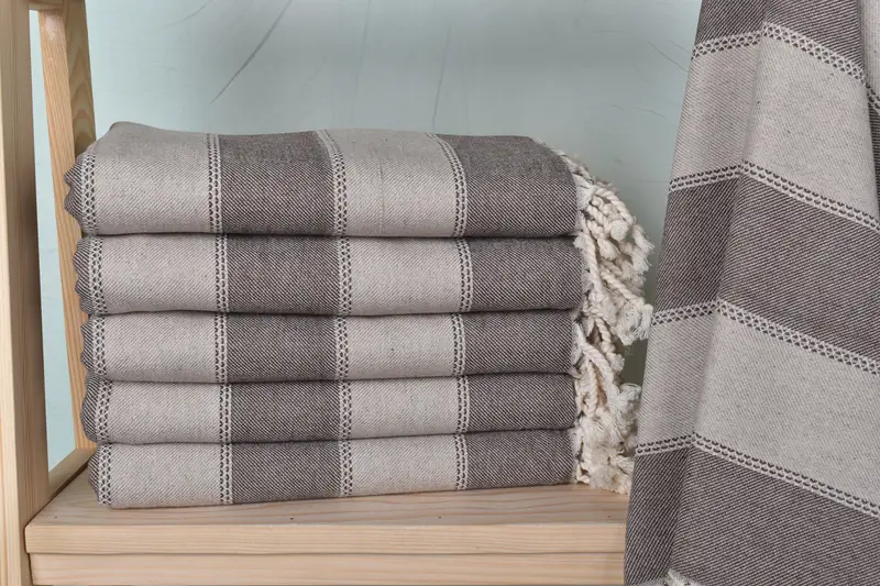 The Bulk Beach Towel is characterized by its organic cotton/linen composition, ensuring superior absorbency and durability. Resulting in an ideal product for beach and bath usage, the material provides comfort and resilience. The towels measure 36x65 inches and weigh 300 grams, with minor variations due to their handmade nature.