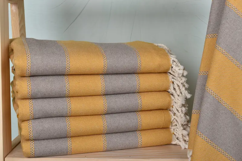 Organic cotton/linen composition ensures exceptional absorbency and durability. Characterized by a 36x65 inches dimension and 300 grams weight, these beach towels are meticulously hand-woven, allowing for minor size variations of up to 1-2.5cm. Customization options include embroidery of names, initials, or logos in selected fonts and thread colors, enhancing personalization. Customers can specify embroidery details for tailored designs. Towels are pre-shrunk and should be washed before first use, and can be dried in an air dryer or standard dr...