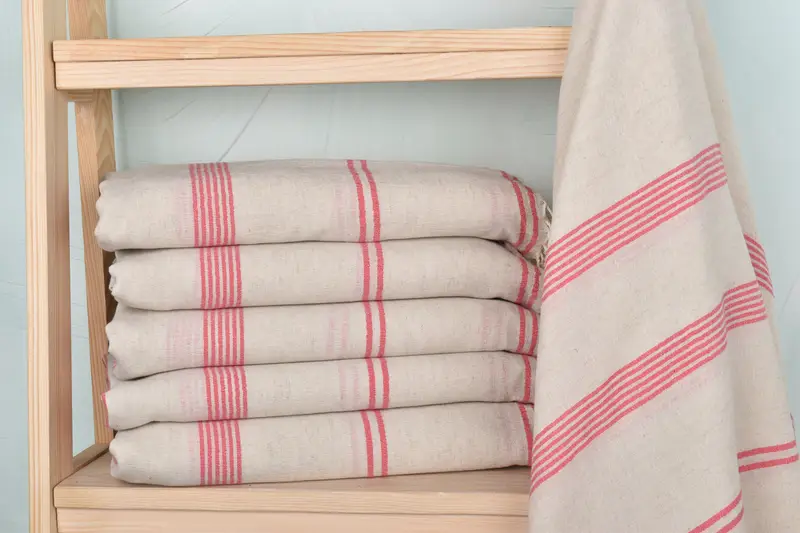 Organic cotton and linen fibers ensure high absorbency and durability, resulting in a towel that is both soft and long-lasting. Characterized by dimensions of 36x79 inches and a weight of 290 grams, these towels may exhibit slight variations due to the hand-weaving process. Embroidery customization is available for various occasions, alongside pre-shrunk status post initial wash.