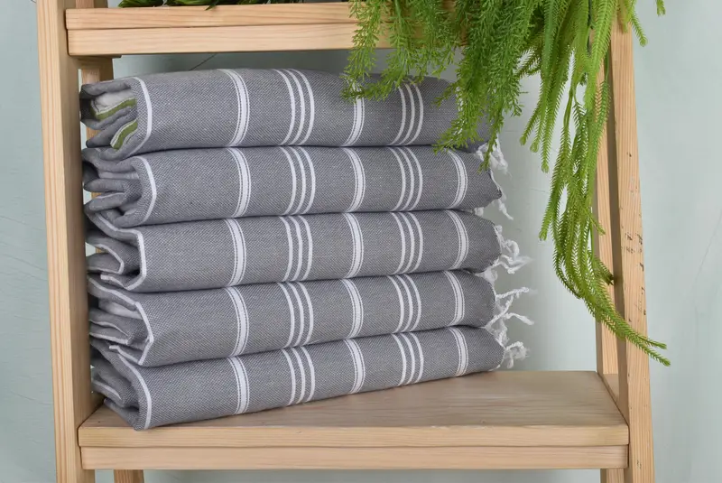The towels are meticulously woven on a loom, and pre-shrink washing is recommended before the first use. They can be washed at 30 degrees Celsius with 600 cycles and dried using both air drying and dryer methods.