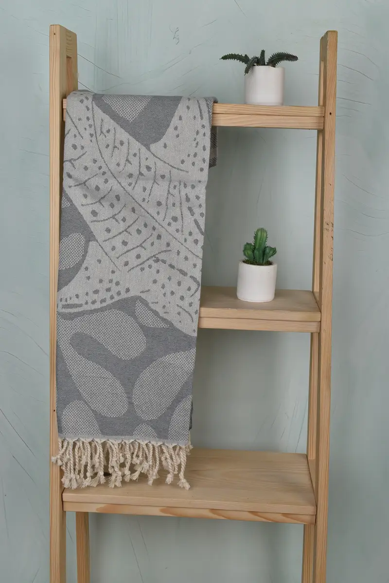 Measurements are 70x40 inches with a tolerance of up to 2.5cm due to hand-weaving. Weighing 450 grams, the towel's construction demands pre-washing prior to fi...