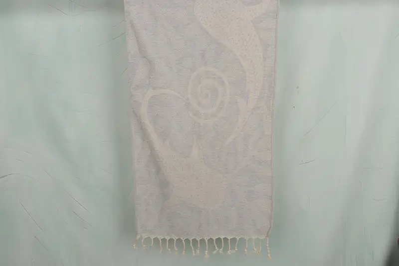 The towels are characterized by their organic cotton material, ensuring durability and sustainability. They measure 40 inches by 18 inches and weigh 120 grams, with slight variations due to hand weaving. Embroidery customization includes options for names, initials, or logos, along with font and thread color selection.
