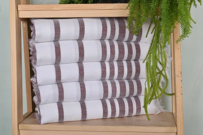 Characterized by its multi-fiber composition, the 24"x36" Burgundy Cotton Hand Towel incorporates organic cotton, ensuring superior absorbency and sustainability. Weighing 120 grams, the towel's dimensions can vary slightly due to the hand-weaving process, typically within a tolerance of 1-2.5cm.