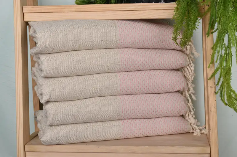 The towel exhibits a robust fiber composition of organic cotton and linen, ensuring superior absorbency and a durable texture. Measuring 40x20 inches with a weight of 120 grams, the hand-weaving process results in slight dimensional variances within 1-2.5cm tolerances. Customizable embroidery options include names, initials, or logos, with a pre-shrunk status recommended for first use washing.