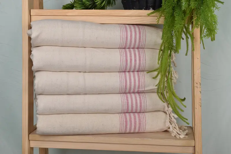 Characterized by its intricate weaving, the 18"x36" Fuchsia Linen Hand Towel incorporates Organic Cotton and Linen, ensuring superior absorbency and durability. Resulting in a lightweight of 104 grams, the dimensions are 36x18 inches; however, variations in handmade pieces may exist within a 1-2.5cm tolerance.