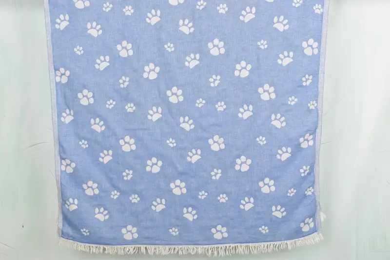 The Paw Design Towel is characterized by its fiber composition, consisting of organic cotton and linen, ensuring high absorbency and durability. Length and width dimensions are 36x71 inches, with a weight of 350 grams, and a tolerance of up to 1-2.5cm due to hand-weaving. Custom embroidery options include names, initials, or logos with a variety of font and color choices. Pre-shrunk prior to first use, these towels are suitable for washing at 30 degrees and 600 cycles, and can be air dried or tumble dried. Shipments are processed within a day a...