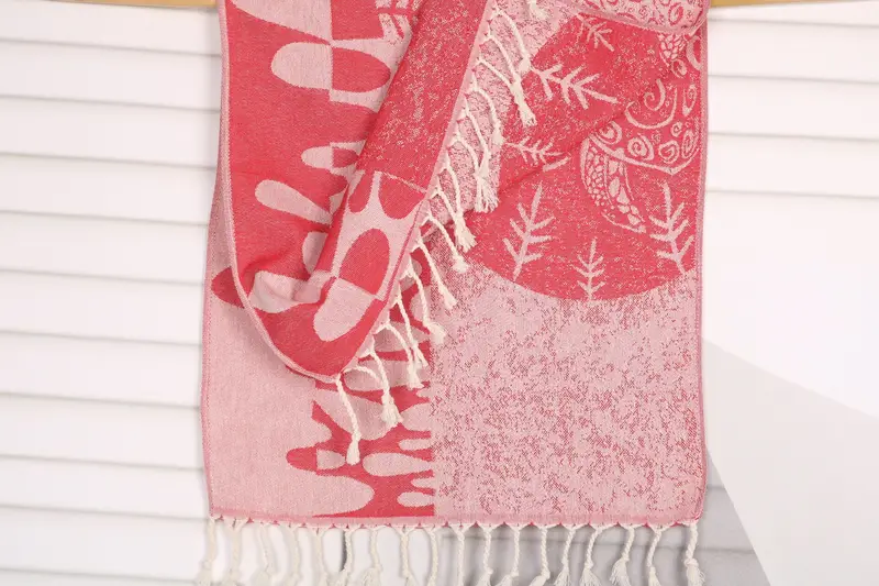 Ensuring durability and absorbency, the 18"x36" Red Cotton Hand Towel is composed of organic Turkish cotton or natural linen, ensuring high quality and comfort. Characterized by a weight of 120 grams, the hand towel is meticulously designed to measure 36x18 inches or 45x90 cm, with a permissible weaving tolerance of 1-2.5cm. Resulting in a premium product, the towel's dimensions and weight provide an optimal balance for various uses.