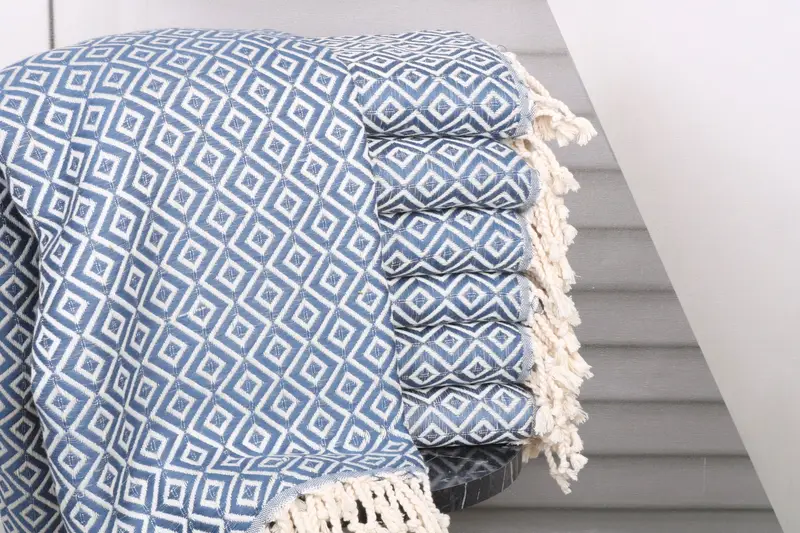 Turkish Beach Towels are made from organic Turkish cotton, characterized by its soft texture and high absorbency, ensuring optimal performance for various applications. Measuring 40x71 inches (100x180 cm) and weighing 440 grams, these towels are designed to maintain shape and durability. Hand-weaving tolerances are ±1-2.5 cm, resulting in slight variations in dimensions.