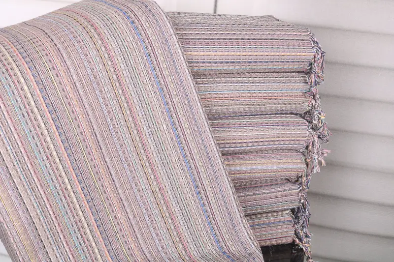 The product is characterized by its construction using organic Turkish cotton or natural linen, ensuring high absorbency and softness. Dimensioned at 40x71 inches or 100x180 cm, with a weight of 380 grams, the towel provides a generous surface area. Variations in hand-weaving may result in dimensions that differ by up to 2.5 cm.