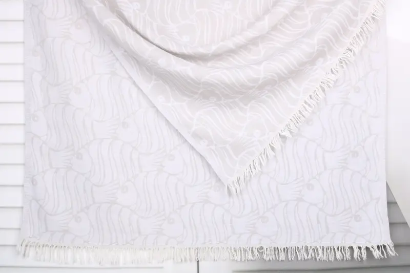 Each beach towel is crafted from organic Turkish cotton or natural linen, ensuring softness and durability. The specific 36x71 inches (90x180 cm) dimensions, resulting in a versatile size for various applications, are coupled with a weight of 316 grams, indicating a substantial, yet lightweight composition. Hand-weaving tolerances are set at 1-2.5cm, ensuring quality control.