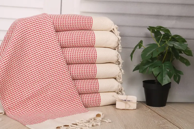 Organic Turkish cotton ensures superior absorbency and durability, characterized by high-quality fibers. Resulting in towels that are lightweight at 140 grams while maintaining a large size of 40x20 inches or 50x100 cm, they are ideal for multiple uses. The hand-weaving process results in tolerances of 1-2.5 cm, ensuring consistency in each piece.