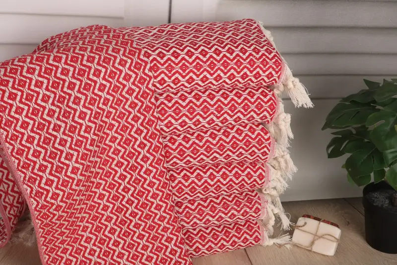 Absorbency and softness are ensured through the use of Organic Turkish Cotton or Natural Linen materials, characterized by their high-quality fiber composition. The towels are characterized by an ample dimension of 36x18 inches or 45x90 cm, with a weight of 120 grams. The hand-weaving tolerances are typically within 1-2.5 cm.